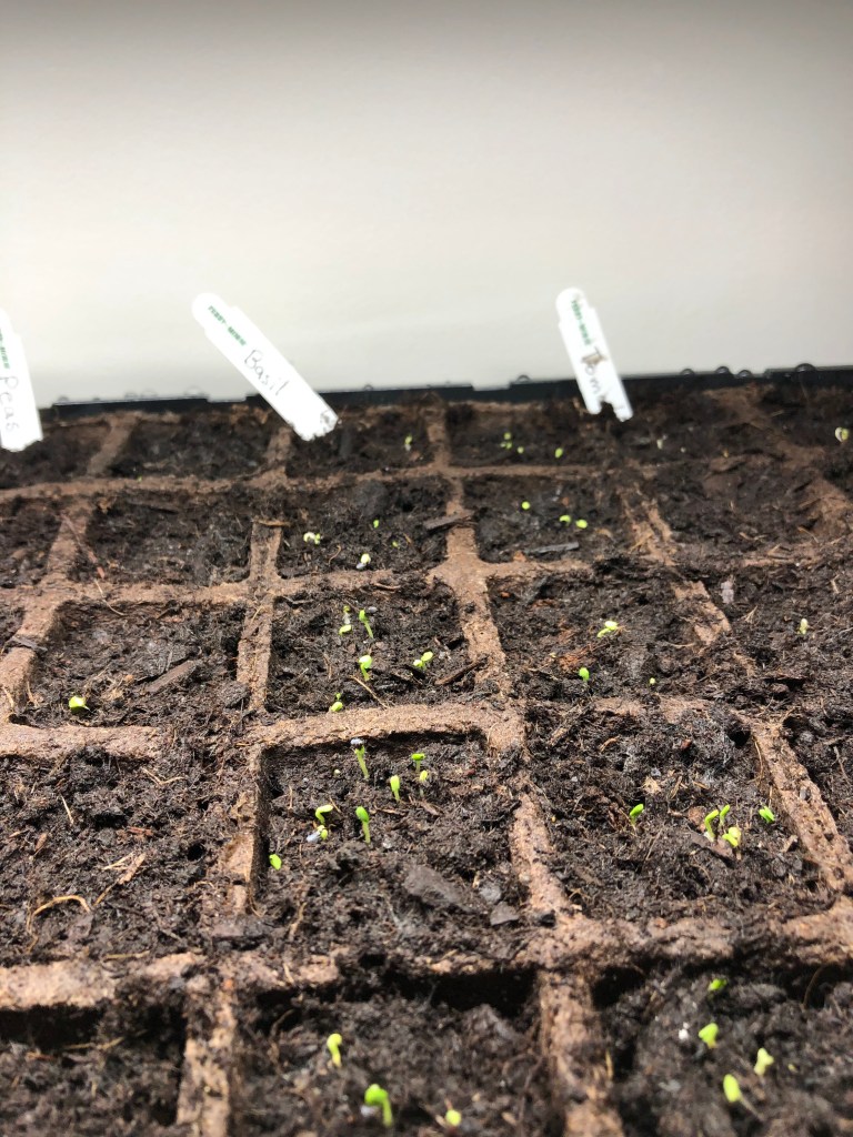 A lot of plants grew! Some plants didn’t grow yet. Peas and Catnip didn’t grow. The Basil and Flower mix grew the most.