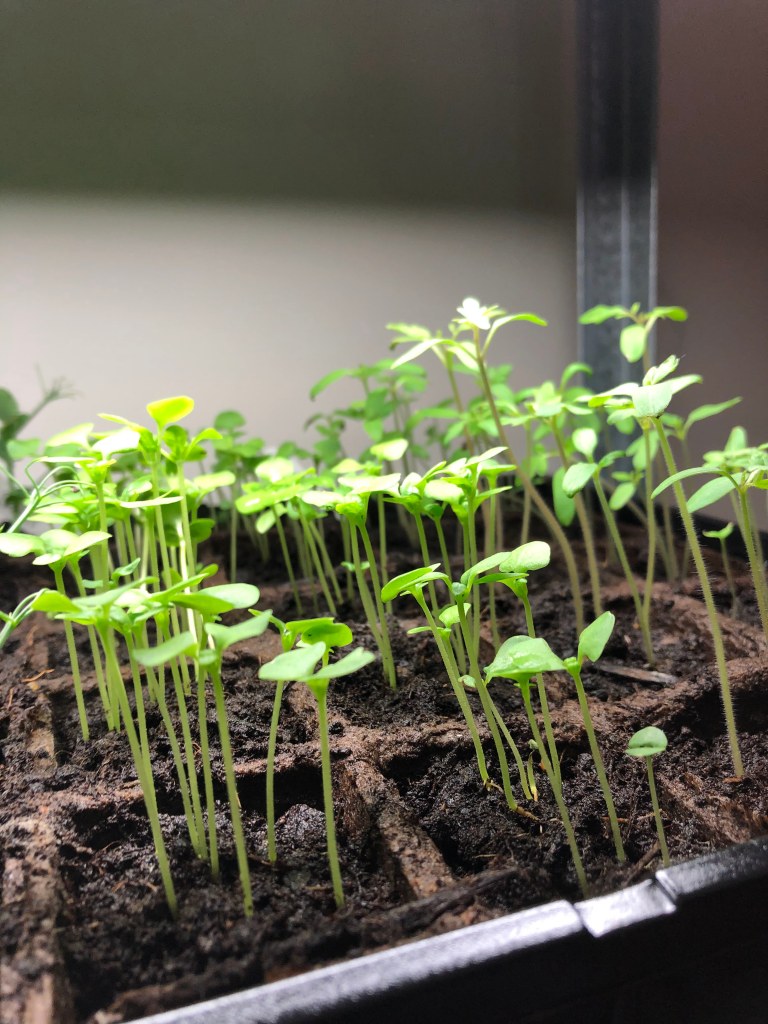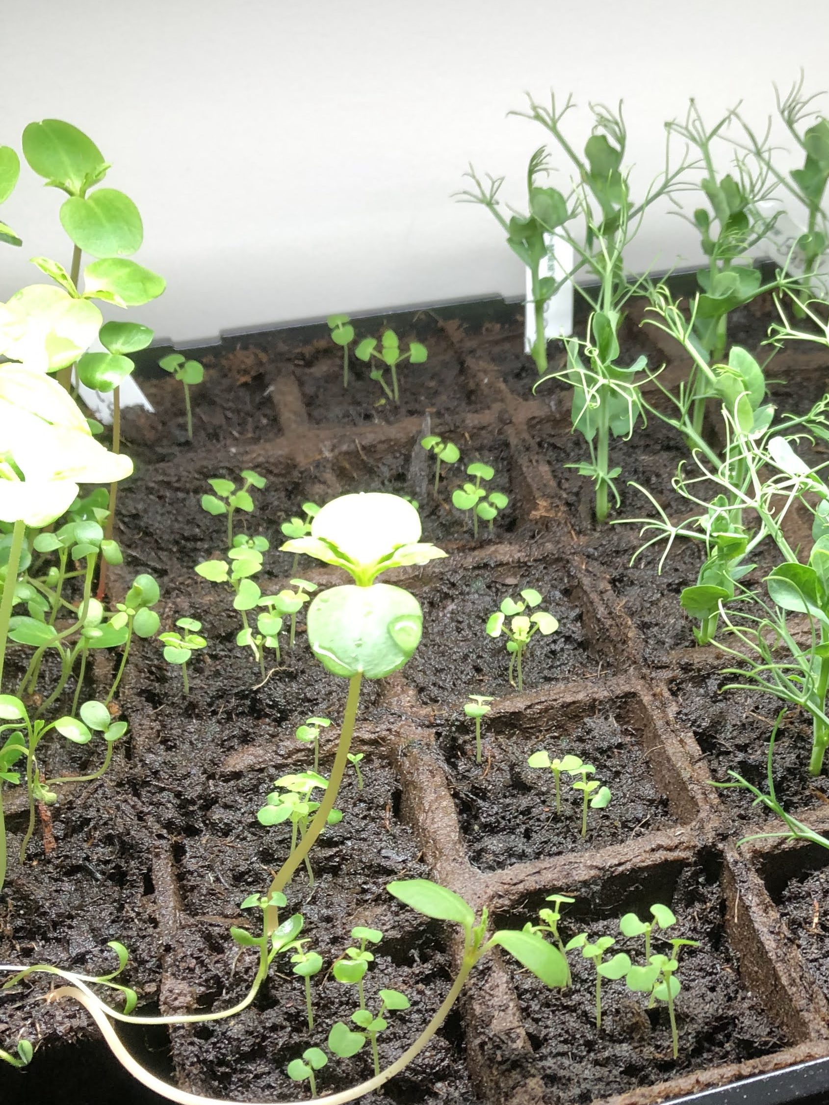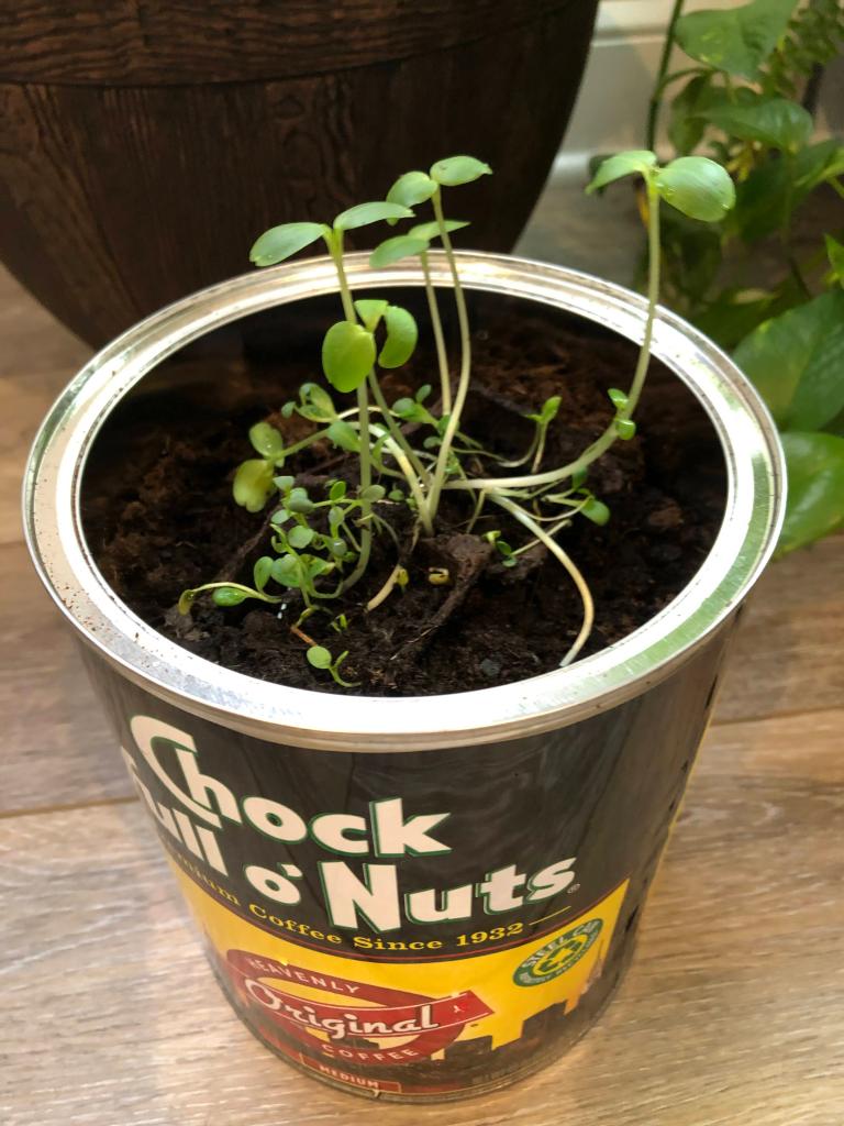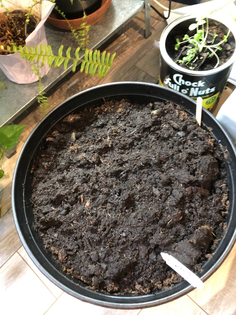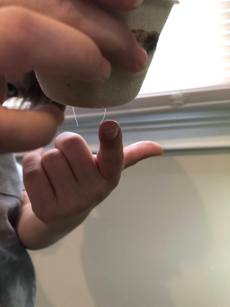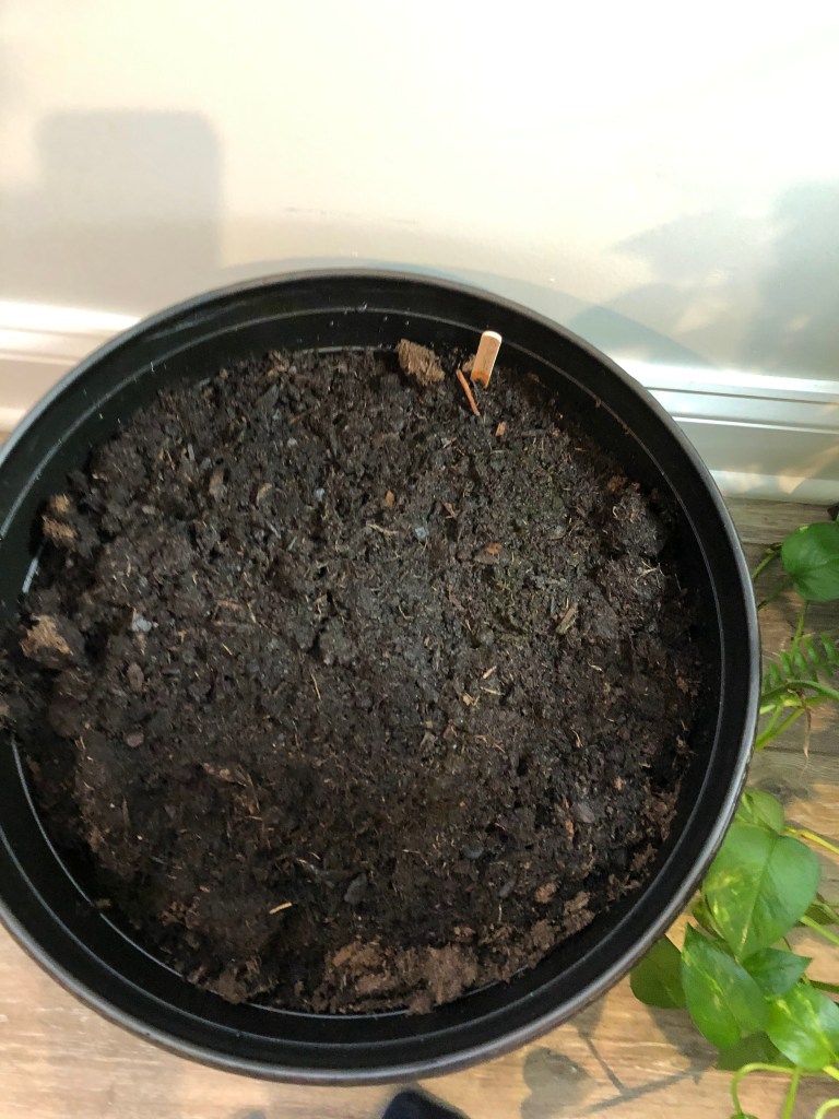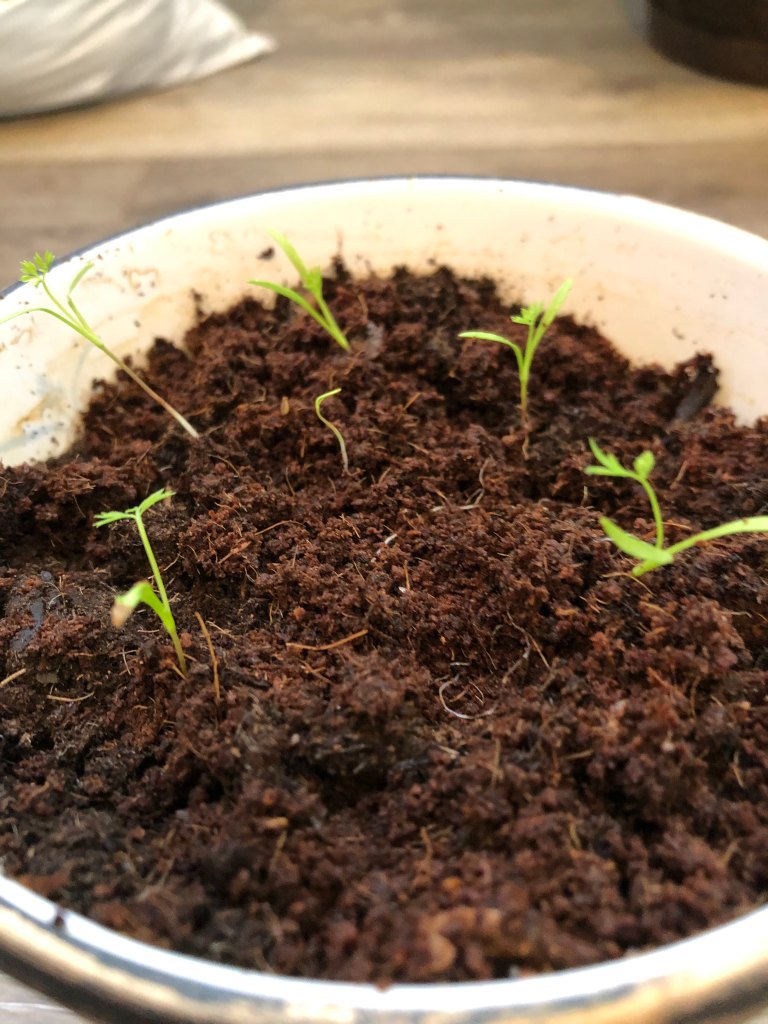 Today I saw the carrot roots grow out! I put them in a new spot. The new pot is bigger.