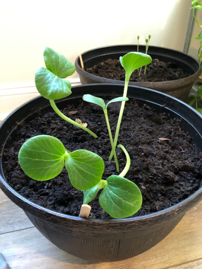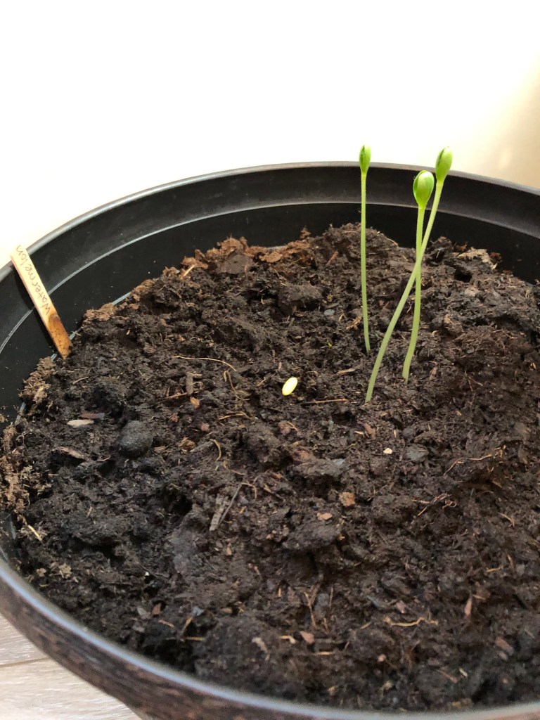 My watermelon grew a new sprout! It doesn’t match the others. It is shorter. They need more water.