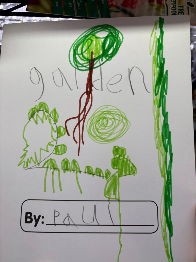 This is my book about a garden. You should try to figure out if it’s Biollante or a plant. It is something that made Biollante. Godzilla + what = Biollante? I’ll give you the answer tomorrow!