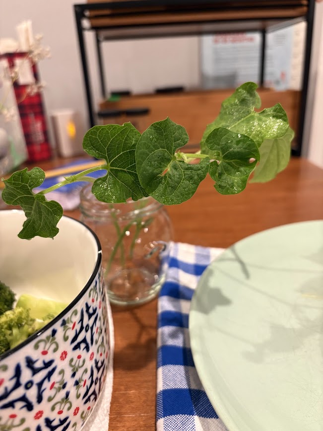 Woah woah woah woah woah woah woah! My harvest is now a little bigger than my first harvest. Today I harvested pea shoots. I ate them. They taste like Peas Macaronni! I’m just faking. If you can plant this, you better eat this and try to stop me with what it tastes like because I’m trying to trick ya!