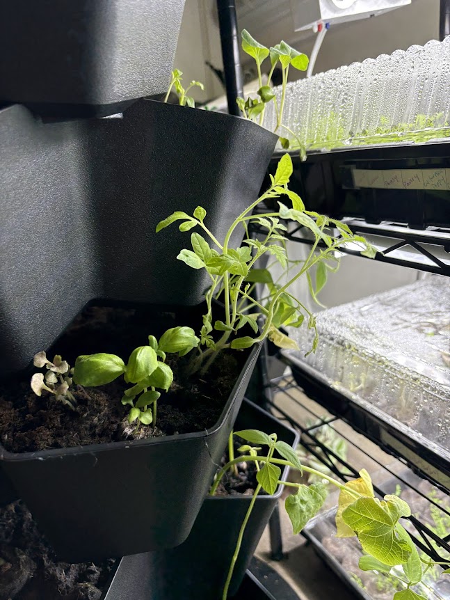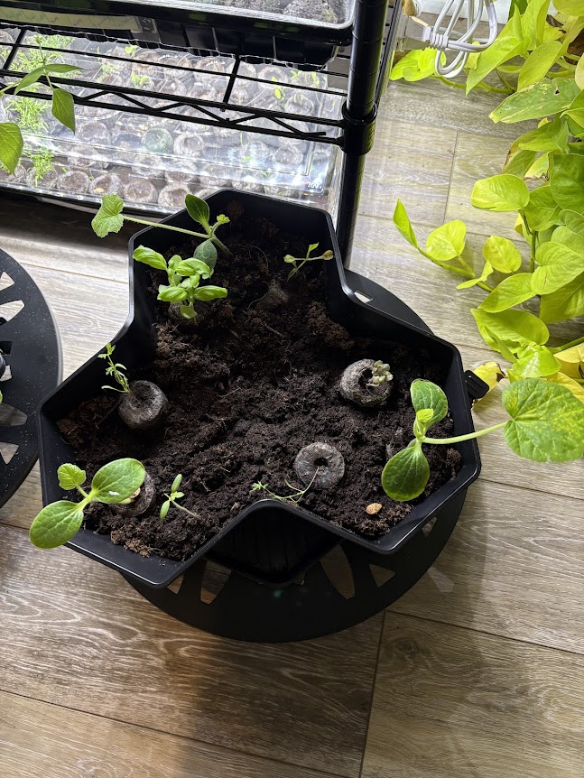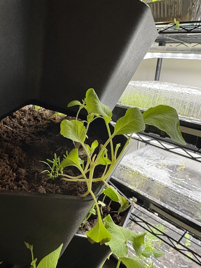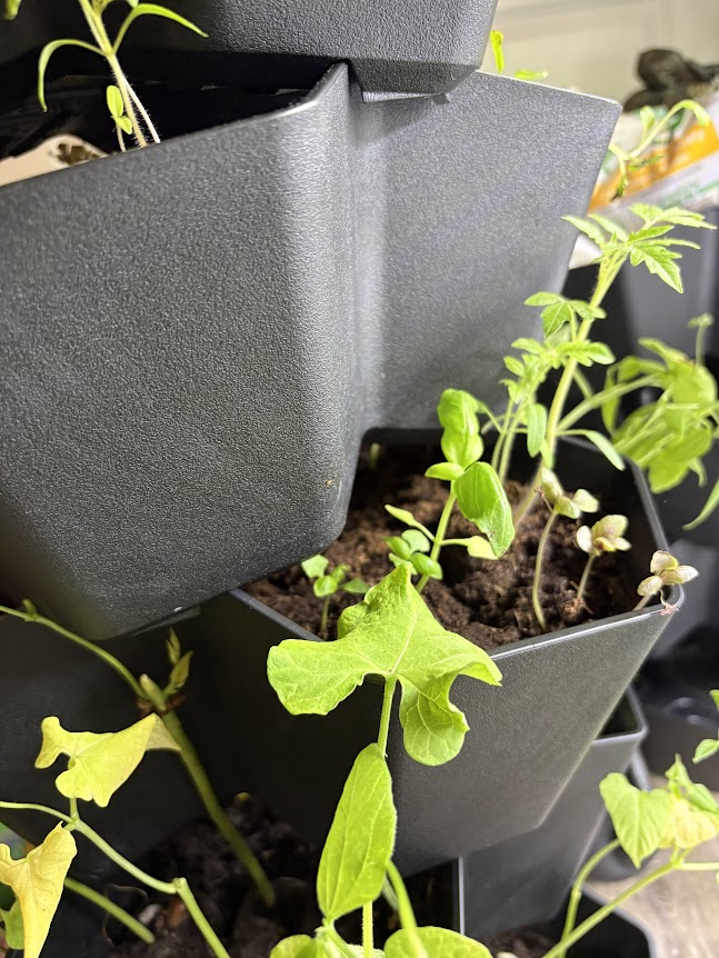 These plants are doing great! Oh! there’s one with a plant growing on both sides. It’s a wweeiirrrddd plant, like the one that died. This plant didn’t die yet. It grew from a bean.