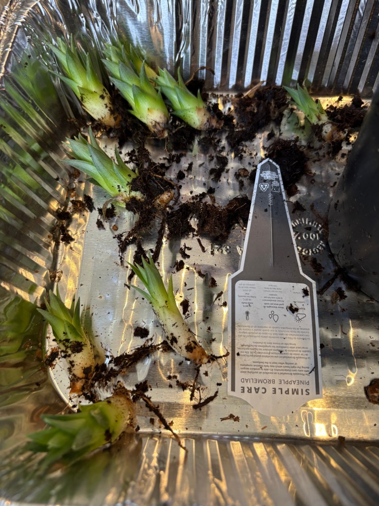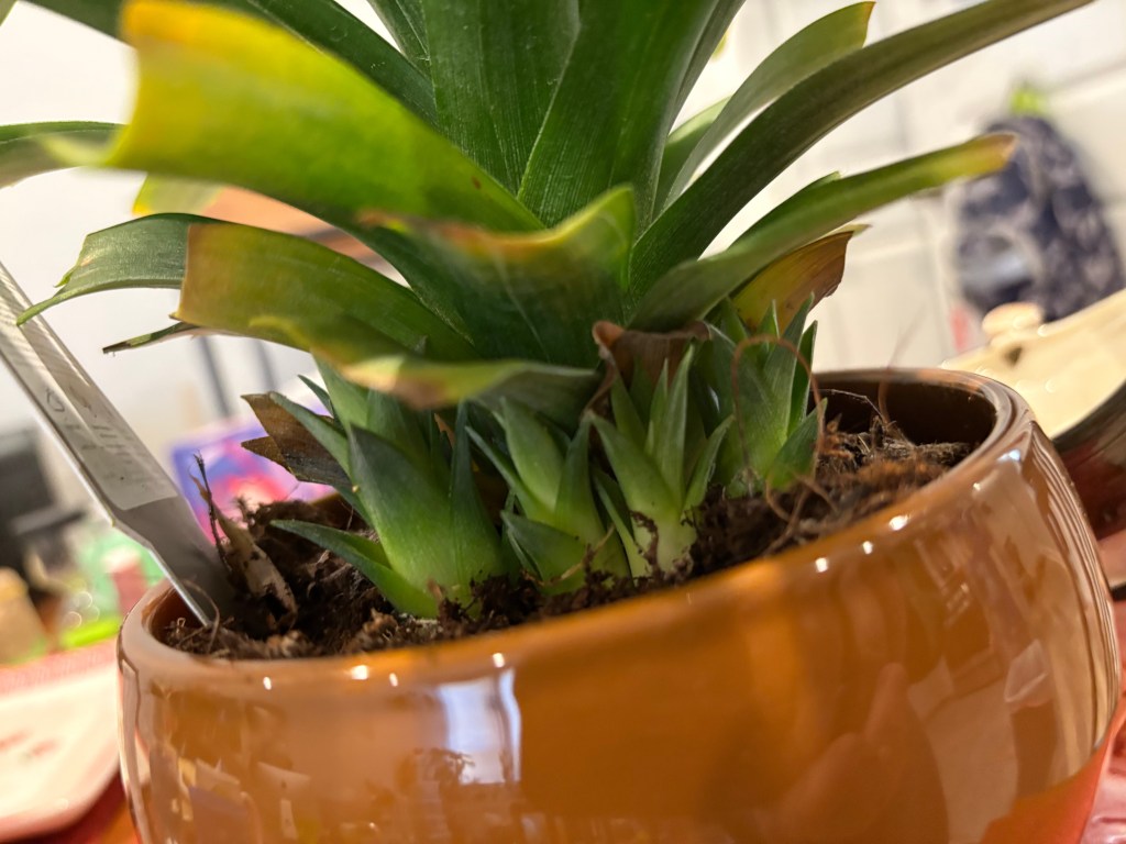 You can’t trust a dinosaur because they don’t know how to put pineapple plants in new containers and keep one to take over! That’s why don’t trust a dinosaur! Because it might not know that you should do what should you do!