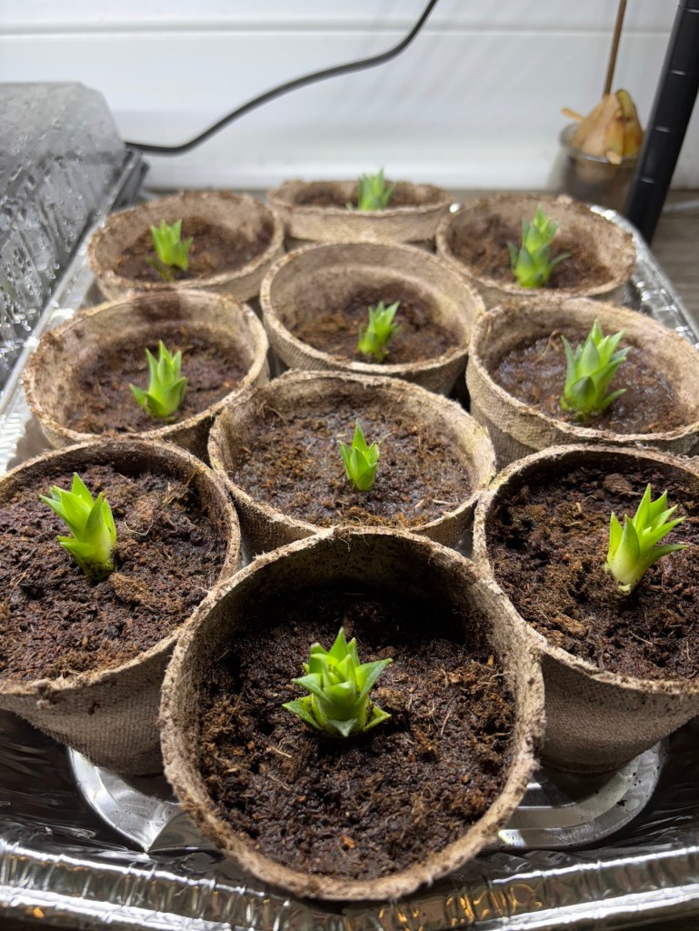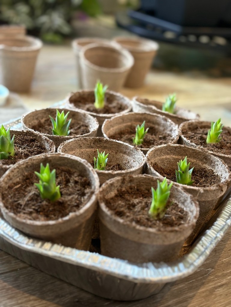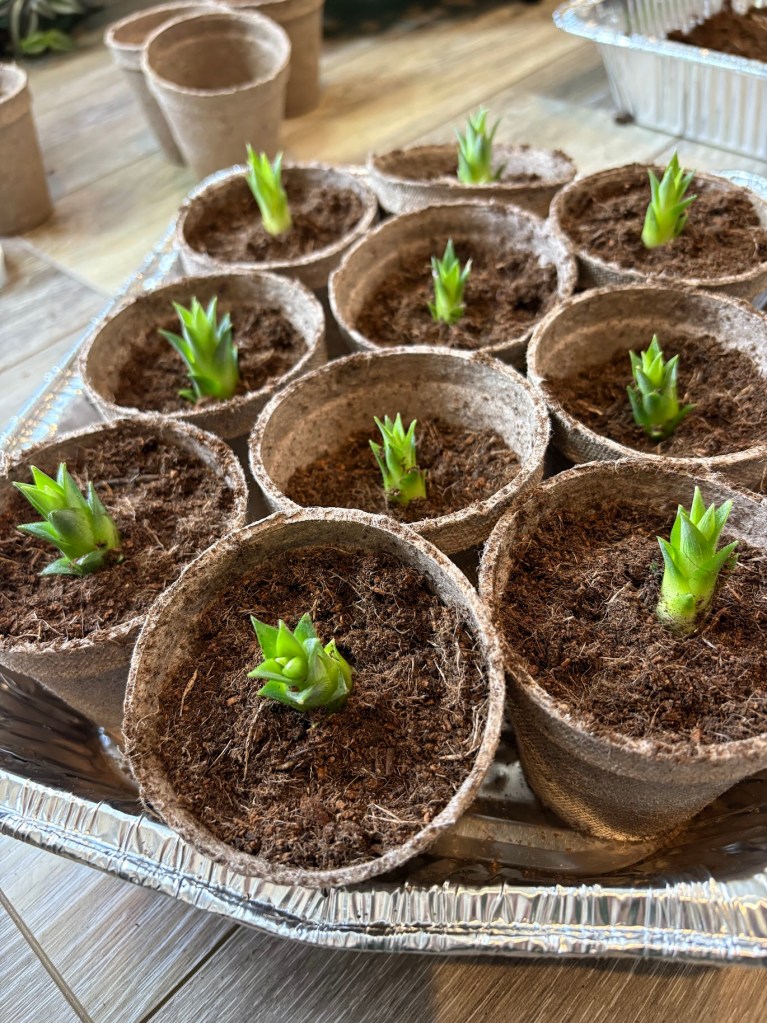 I planted them in their new homes. See those cups? Those are where I put them.