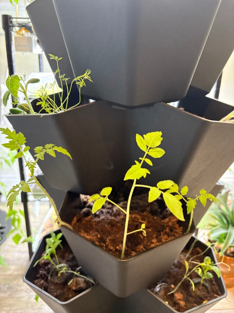 I turned the stacked up garden today! I turned it because I want the plants to be straight.