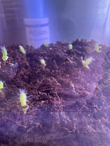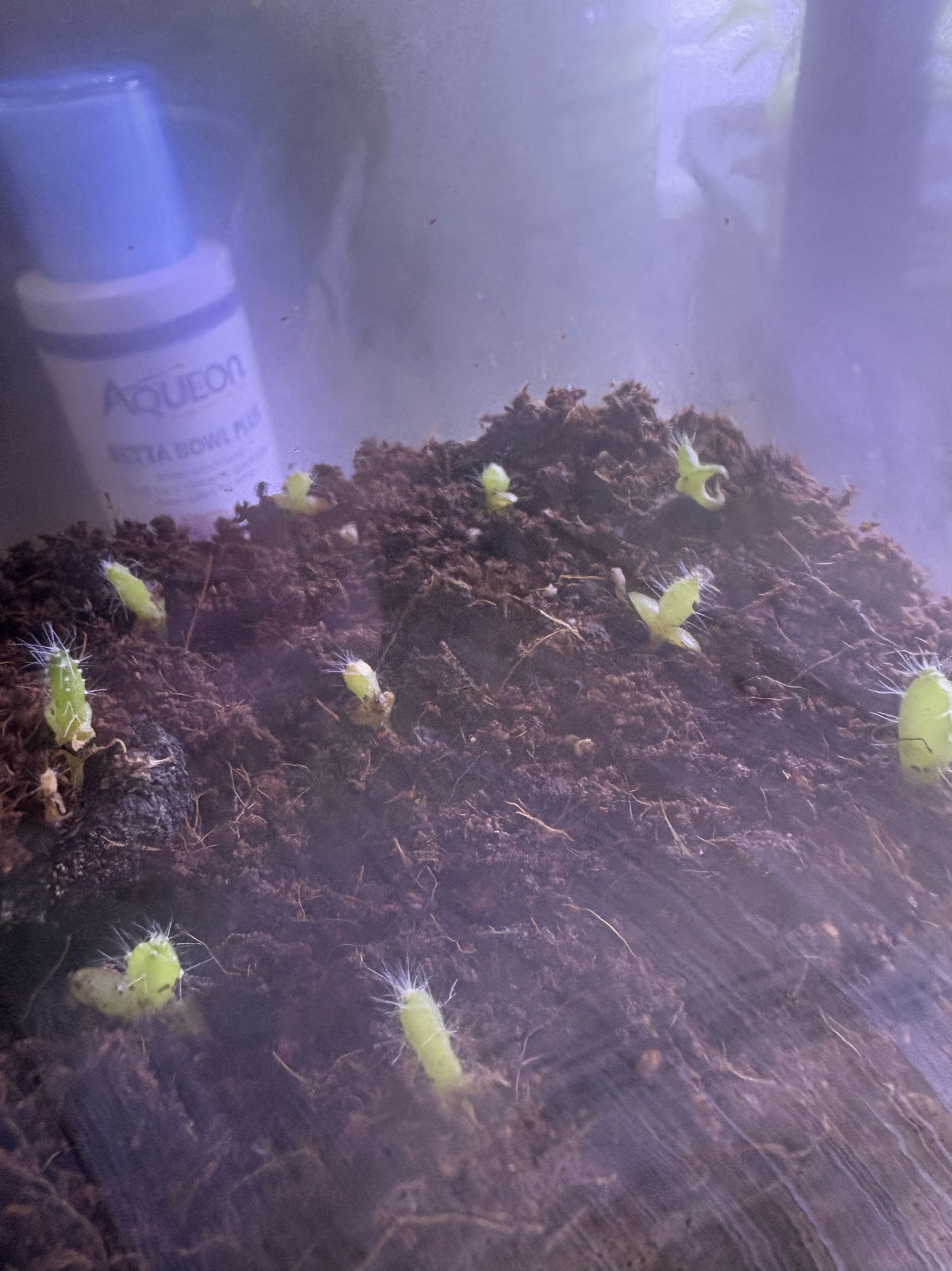 The dragonfruits were grown and we didn’t really add them to any of our things, so we’re going to tell you this: the dragonfruit in a wet place is doing great! It’s like very big. We got the seeds from the real plant! From the fruit from the grocery store! I’m very creative.